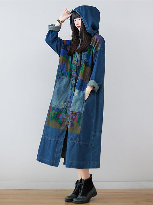 Robe longue ample en jean à imprimé floral printanier pour femme AS1038