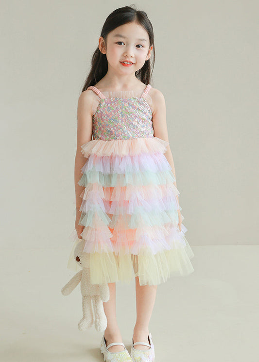 Jolie robe à bretelles spaghetti en tulle à paillettes arc-en-ciel pour filles, sans manches, TT024