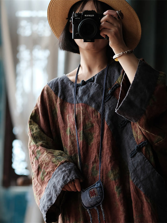 Robe d'été en lin à imprimé floral vintage pour femme RR024