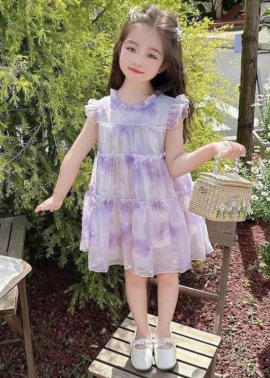 Robe élégante en mousseline de soie à volants violets pour filles, été TT045