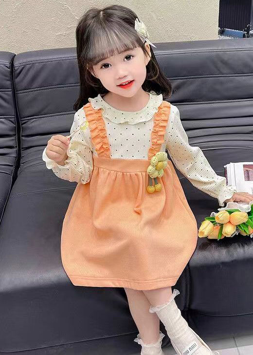 Jolie robe en coton deux pièces à volants orange pour fille Automne XZ062