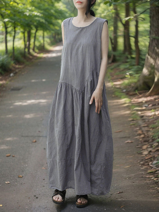 Robe gilet à col rond en coton uni rétro pour femme CX046