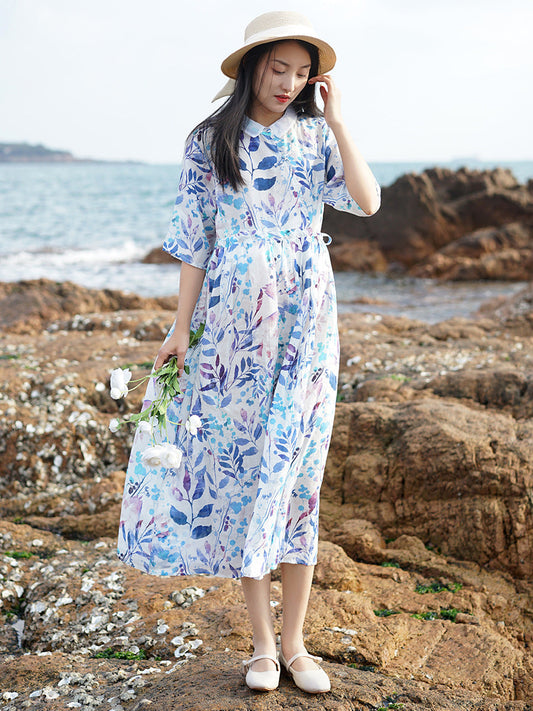 Robe d'été en ramie à bretelles et imprimé végétal artistique pour femmes CC032