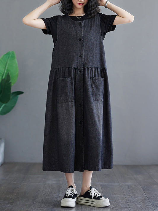 Robe d'été boutonnée en denim uni pour femme OP1040