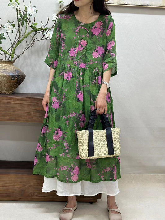 Robe d'été ample à manches mi-longues en ramie pour femme ZZ1033