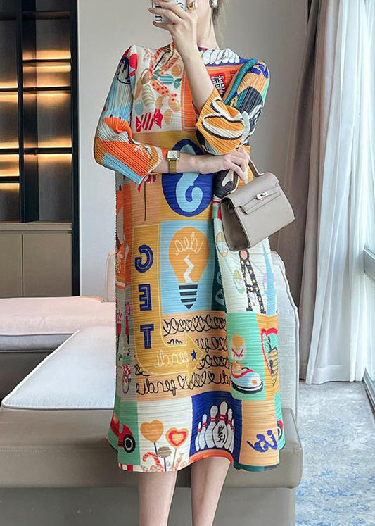 Robe longue froissée à imprimé col rond jaune style été GH1057