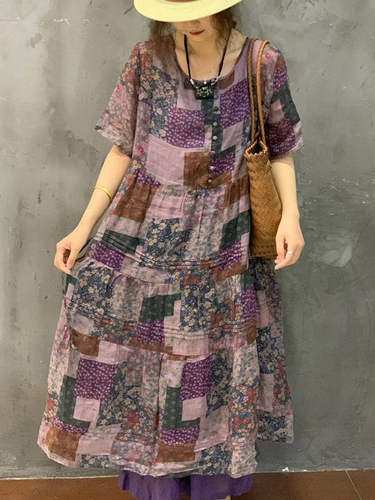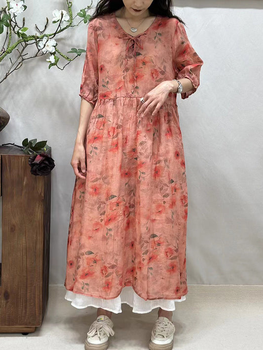 Robe d'été vintage à imprimé floral en ramie pour femme FG1014