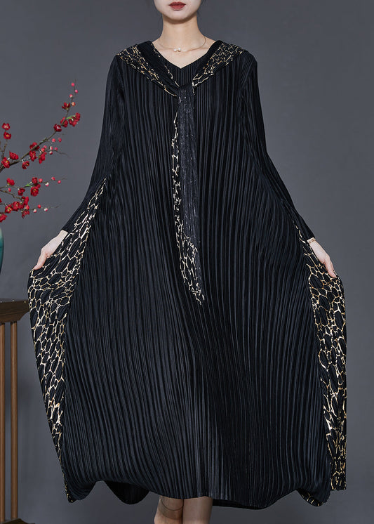 Robe longue froissée à capuche noire style bohème en patchwork, printemps SD1065