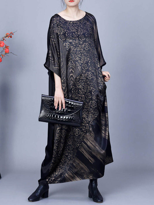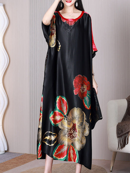 Robe d'été ample en soie fleurie élégante pour femme XX1003