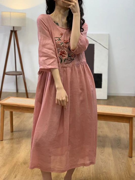 Robe d'été en ramie brodée de fleurs vintage pour femmes AA1044