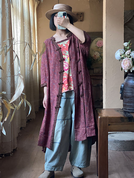 Robe ample à carreaux floraux vintage pour femme en ramie KL1025
