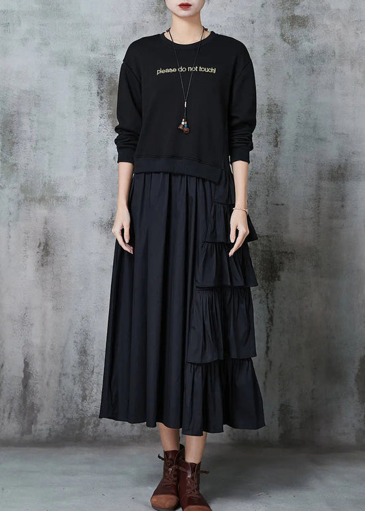 Robe sweat-shirt en coton patchwork noir à volants superposés printemps JK1025