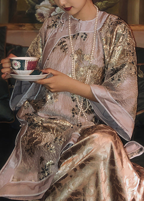 Robe mi-longue en coton à boutons roses de style chinois avec manches à bracelet QA1005