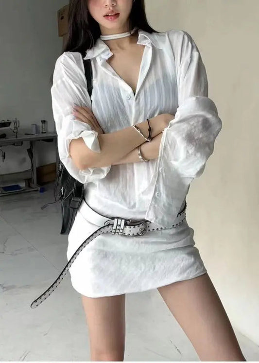 Chemises en coton à boutons Robe mi-longue à manches longues