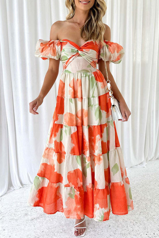Robe élégante et douce à imprimé floral et épaules dénudées FS1580