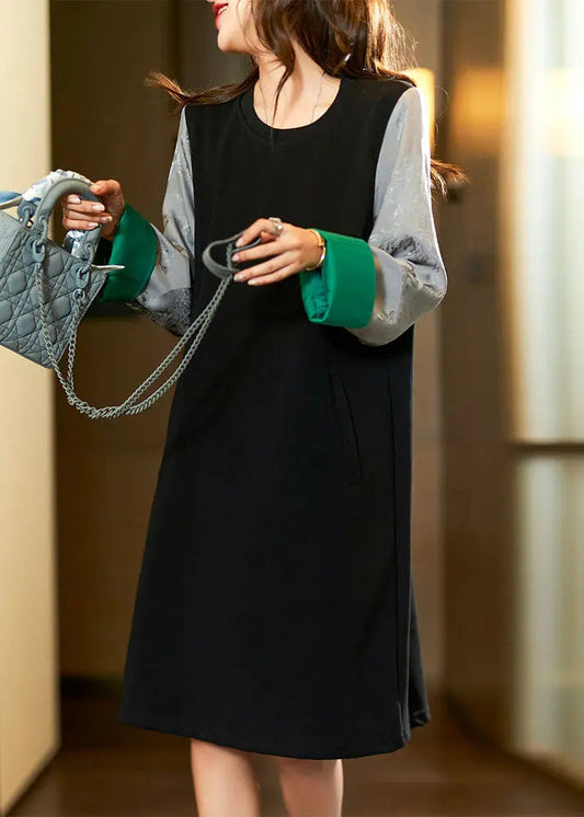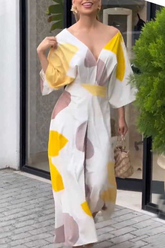 Robe élégante à imprimé blocs de couleurs contrastés et col en V FS1596
