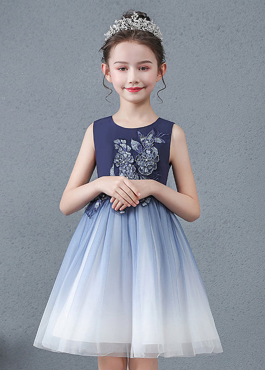 Jolie robe d'été en tulle bleu marine pour bébé fille, coupe ajustée, en jacquard