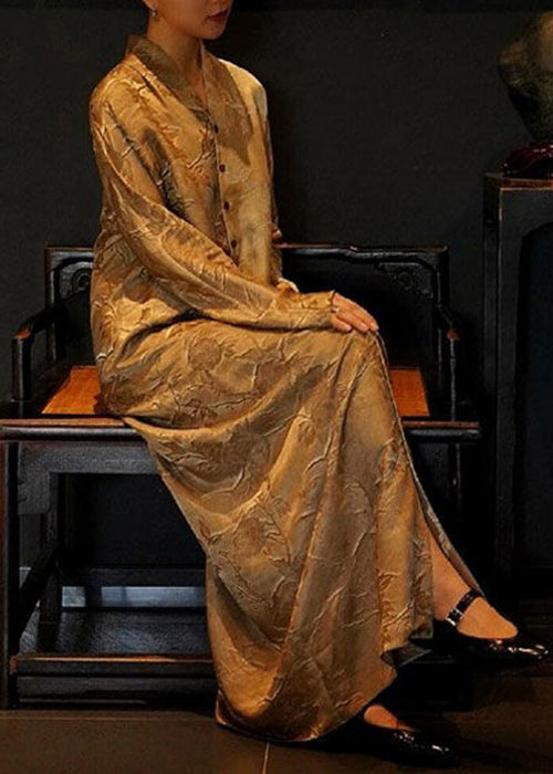 Chemises françaises en V, robes d'automne, col boutonné, imprimé soie