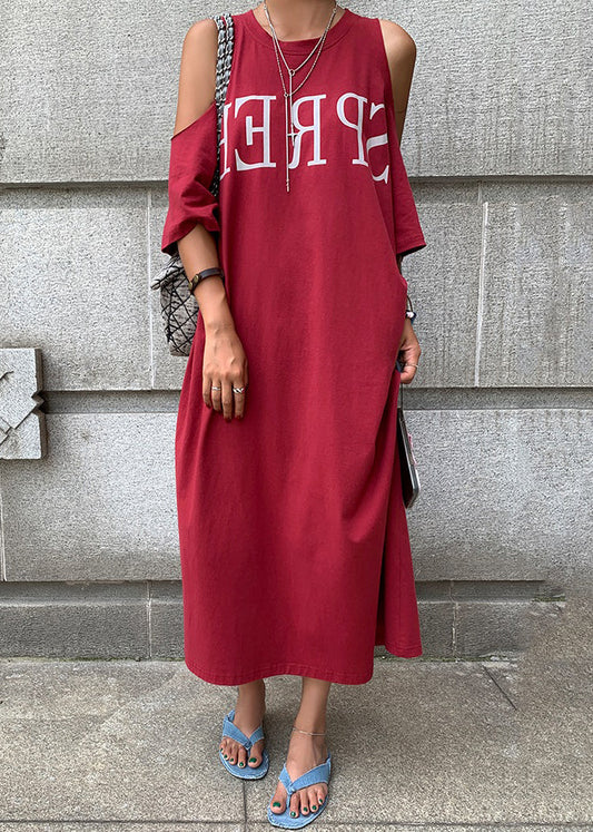 Robe longue bohème asymétrique violette sans manches en coton à volants