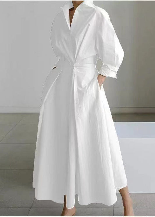 Robe de printemps décontractée en coton à la cheville, chemise beige imprimée surdimensionnée