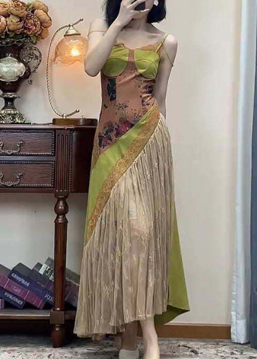 Robe verte en dentelle spaghetti, nouvelle collection, bretelles patchwork, sans manches