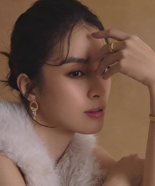 Boucles d'oreilles à tige en cuivre rétro surdoré perle or