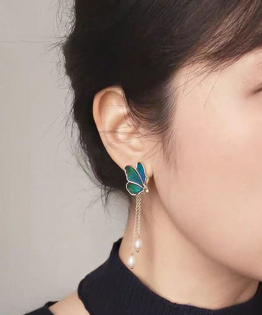 Boucles d'oreilles à tige en or style alliage avec perles papillon chinoises