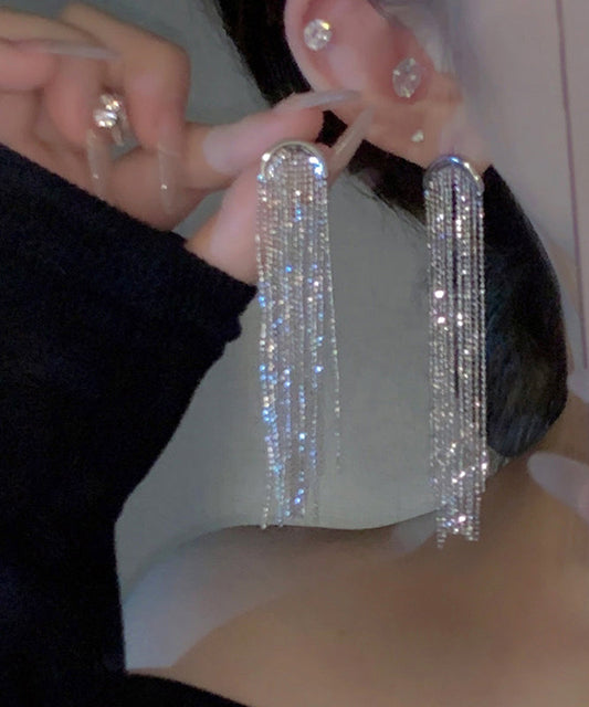 Boucles d'oreilles pendantes élégantes en alliage d'argent sterling et de zircons WQ030