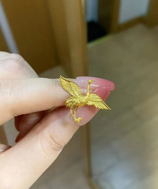 Boucles d'oreilles à tige en or fin et or antique en forme de grue volante WQ018