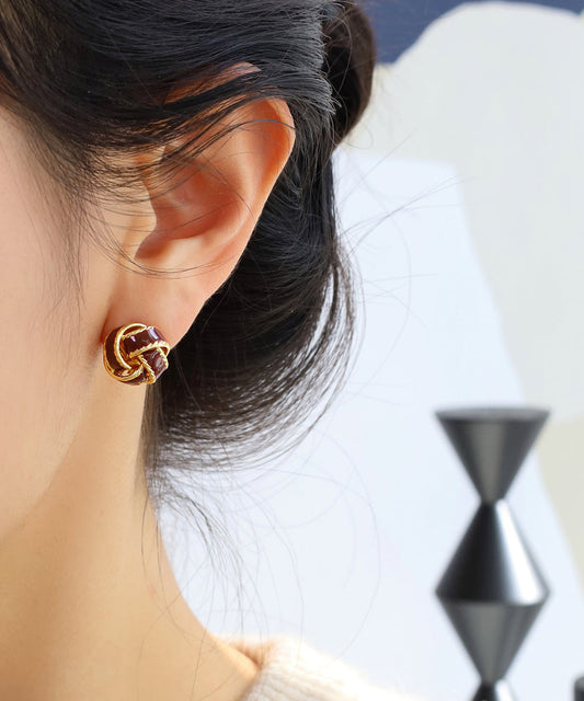 Boucles d'oreilles à tige modernes en argent sterling et émail surdoré de mûrier WQ017