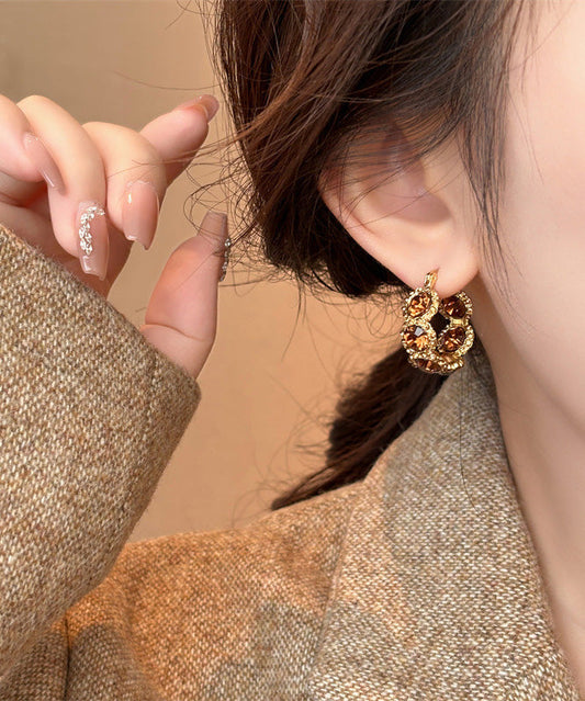 Boucles d'oreilles créoles en alliage d'argent sterling et cristal de zircone Art Coffee QJ041
