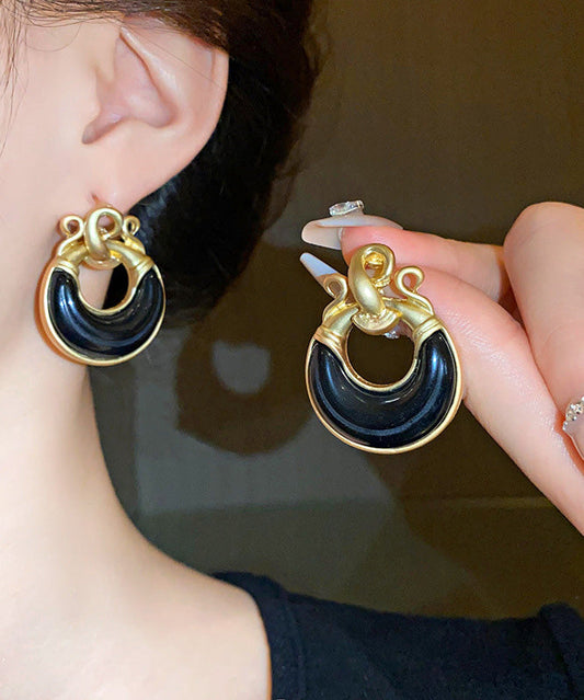 Boucles d'oreilles pendantes à pampilles en alliage de métal doré rétro QJ022