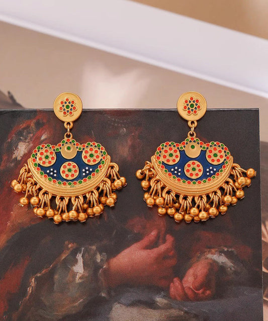 Boucles d'oreilles pendantes à pampilles en émail doré bleu antique rétro QJ035