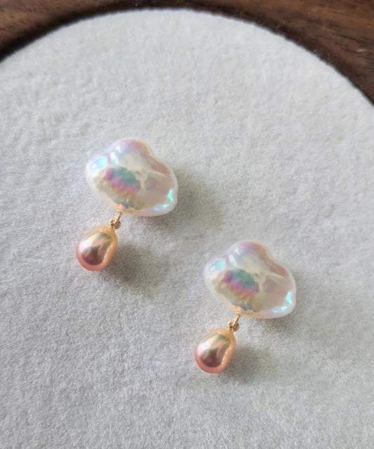 Boucles d'oreilles créoles en mousseline de soie avec perles en alliage d'argent sterling de style rose AB1059