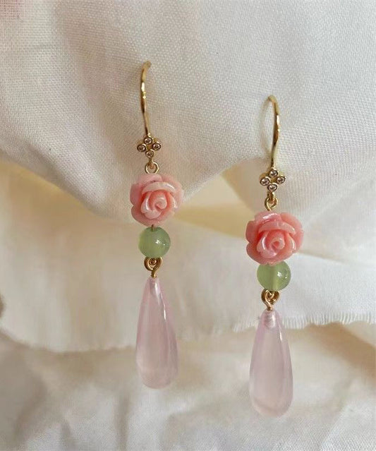 Boucles d'oreilles pendantes en argent sterling rose rétro avec motif goutte d'eau AC1079