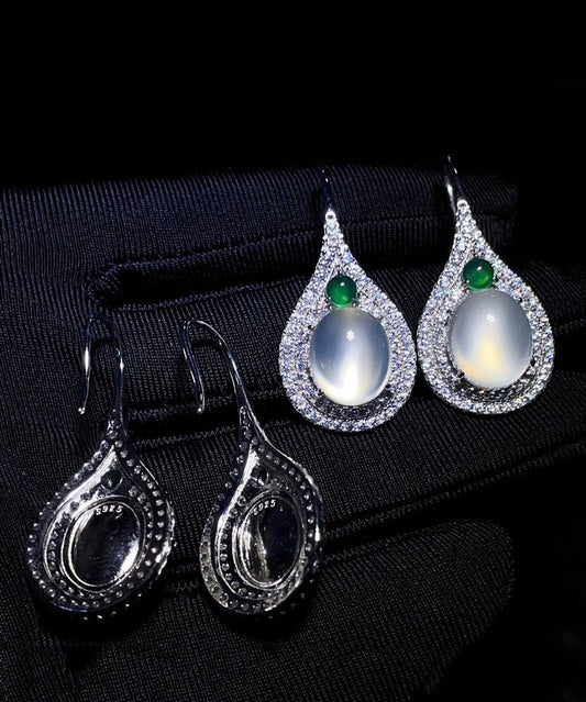 Boucles d'oreilles pendantes en argent sterling et jade incrusté de zircons, chic et nude, AC1064