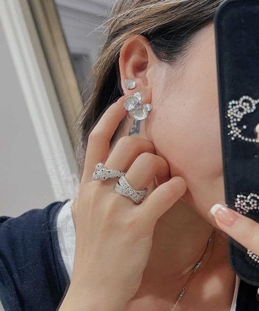 Boucles d'oreilles à tige en argent sterling avec cristal violet et orchidée papillon AC1062