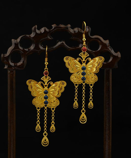 Boucles d'oreilles pendantes à pampilles papillon rétro en argent sterling surdoré orange QQ010