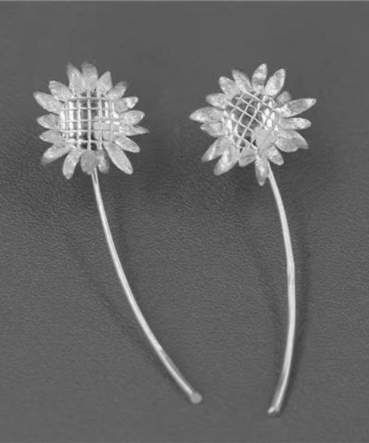 Boucles d'oreilles pendantes amovibles en argent sterling doré avec motif tournesol QQ037