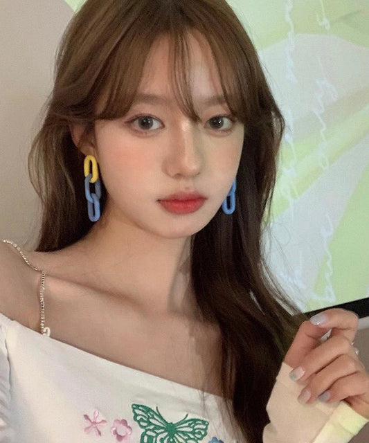 Boucles d'oreilles pendantes en argent sterling avec blocs de couleurs tendance et incrustations d'agate turquoise en forme de goutte d'eau ZZ010