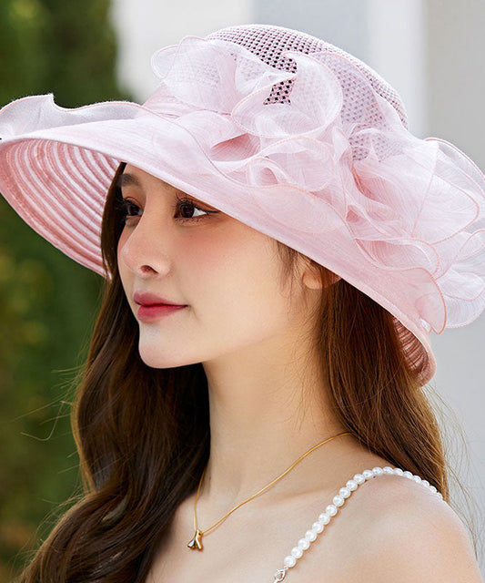 Chapeau pare-soleil élégant en tulle beige avec haut vide et fleur pour l'été YU1026