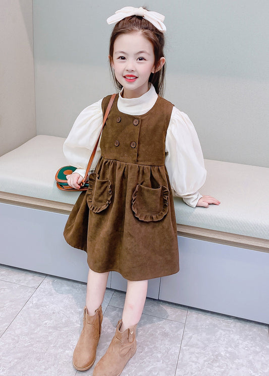 Ensemble deux pièces élégant à col roulé et poches en velours côtelé pour filles, automne ML0041