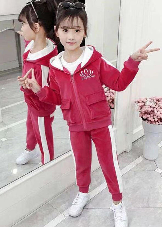 Ensemble deux pièces en polaire chaude rose avec capuche et poches zippées pour fille, idéal pour l'hiver, ML0047