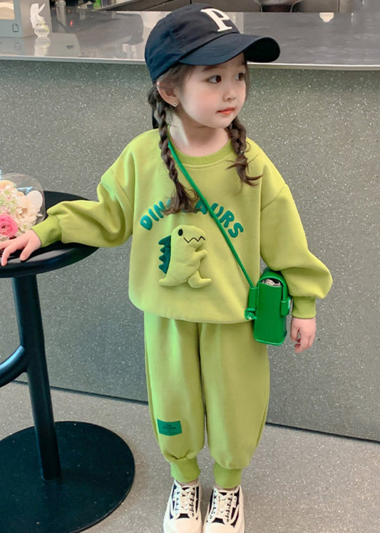 Ensemble deux pièces en coton vert à col rond et poches pour filles, manches longues, ML0042