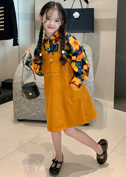 Ensemble deux pièces en coton imprimé orange à col Peter Pan pour fille FallML0038