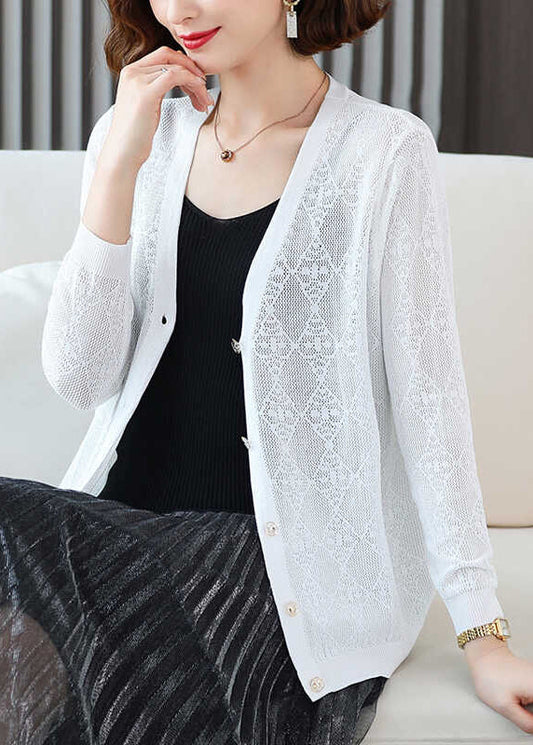 Cardigan d'automne en tricot uni avec perles violettes et col rond QI006