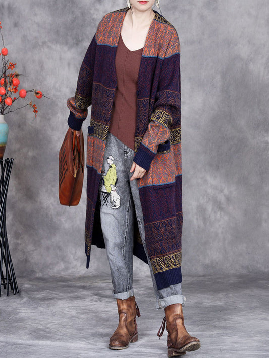 Manteau cardigan tricoté vintage en laine colorblock pour femme AI1034