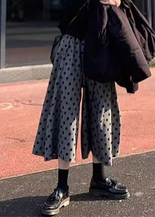 Pantalon d'été en coton gris à pois, taille élastique, jambes larges