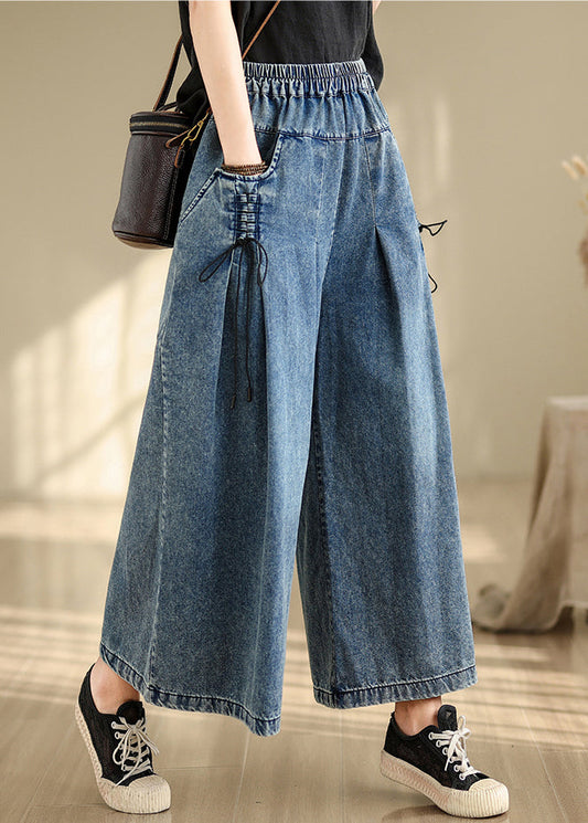 Pantalon en denim bleu moderne à lacets pour le printemps