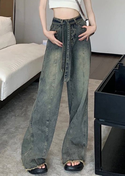 Pantalon taille haute bleu printemps asymétrique denim moderne